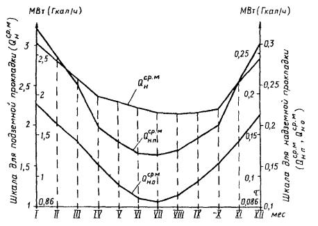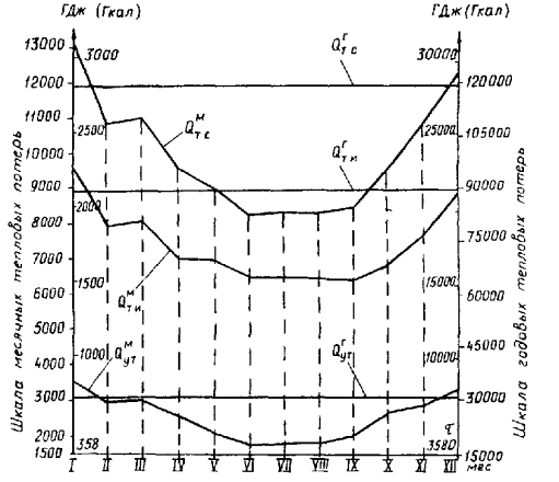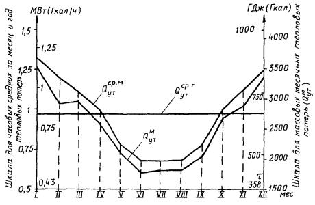 Месячные суммарные тепловые потери всей сети,