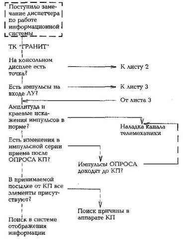 повреждение выхода микросхемы в КВМ. 5.2. Если обнаружен сигнал ГПР = 1 от ФБ, то события происходят в следующей последовательности: КВМ выдает в ЛУ0 единицу и тактовые импульсы, включает кодер, формирует байты номера КП (NКП), номера ФБ (NФБ), два байта NФБ в распределительном коде, два байта кода результата деления всей информации на полином 16-й степени. После выдачи 2-го байта КПК КВМ снимает сигналы АФБ ЛУ0 и ТИ ЛУ0, приводит в исходное состояние шины КОМ и возвращается в начало. Из вышеприведенного описания следуют эксплуатационные рекомендации: если номер контролируемого пункта выдается неверный, то следует проверить правильность установки перемычек на ряде выводов (но не исключено также повреждение микросхемы); если не соблюдается последовательность взаимодействия сигналов, то можно оценить, какой из ФБ неисправен, т.е. ЛУ0, КВМ или ФБ, либо общая шина, на которую работают все ФБ. В этом случае нужно "разгружать" шину последовательно, выставляя другие ФБ из КК. Приложение 2ОРИЕНТАЦИЯ В ПРОГРАММНОМ ОБЕСПЕЧЕНИИ ТК "ГРАНИТ"При нажатии кнопки "сброс" (красная кнопка на фасаде ФБ типа Р-25) программный счетчик процессора микроЭВМ устанавливается на адрес 1730008 и начинается выполнение блока команд, в результате чего в оперативную память загружается программа начальной загрузки, которой передается управление. В ПЗУ, размещенном на интерфейсной карте ПП-011, начальный адрес 1730008. Карта вставлена в каркас микро-ЭВМ, через нее (карту) реализована связь ЭВМ с внешней памятью ВЗУ, на платах (ПП-013) которого записано все базовое программное обеспечение (БПО). Если загрузка не начинается вообще, то следует с дисплея обратиться по адресу 173000/... ВК. При ответе в виде знака ? нужно заменить плату ПП-011 (или проверить установку ее в разъем). Возможно, что какая-либо интерфейсная карта в каркасе ЭВМ неисправна и "портит" общую шину микроЭВМ. Для поиска - последовательно разгрузить каркас ЭВМ, оставляя только ПП-011. В случае отсутствия всякой реакции на нажатие кнопки "сброс" на Р-25 следует заменить ФБ Р-25. Программа начальной загрузки загружает в ОЗУ микроЭВМ программные модули в соответствии с картой загрузки GRANIT. Названия загружаемых модулей во время загрузки появляются на экране дисплея-консоли. Порядок загрузки следующий: SPR - операционная система; DVR-01 - драйвер системного терминала (консоли); DVR-02 - драйвер дисков НГМД; DVR-07 - драйвер ВЗУ; DVR-08 - драйвер системной централи, т.е. ФБ, связывающего микроЭВМ со всеми КК; DVR-09 - драйвер передатчика канала ММО; DVR-10 - драйвер приемника канала ММО; DVR-11 - драйвер удаленного диспетчерского дисплея; ДФА - программа диспетчер функционального адреса; ТIT - программа обработки текущих телеизмерений; ТII - программа обработки интегральных телеизмерений; TS - то же телесигнализации; IS - программный интерфейс связи программных модулей; INIT - программа для ММО; LOADR- перемещающий загрузчик; СТI - программа для управления технологической информацией на диспетчерском дисплее; ВС/Р - программа для вывода "бегущей" строки; ТU - программа организации посылок ТУ; ДРТU - программа, обеспечивающая ТУ с диспетчерского дисплея; SUF - система управления файлами; DS - диспетчер локальной сети (для диспетчеризации отправления посылок от ПУ к КП). Далее формируются системно распределенная область, таблица прерываний, в которой каждому "вектору" соответствует ад