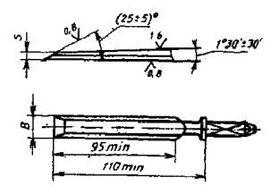 Примечание. Допускается по заказу потребителя стамески шириной полотна В = 6, 8, 10 мм изготовлять толщиной s = 4 мм.