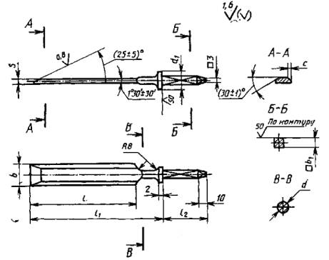 2.3. (Измененная редакция, Изм. № 1, 3). 2.4. Колпачки должны изготовляться из стали марок 08кп, 10кп или 10 по ГОСТ 1050-88, допускается, изготовление колпачков из стали марок Ст0, Ст1, Ст2, Ст3 по ГОСТ 380-88. 2.5. Хвостовик должен иметь форму, обеспечивающую