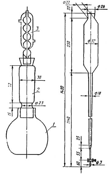1 - колба; 2 - насадка; 3 - холодильник Черт. 1 Черт. 2 Вода дистиллированная по ГОСТ 6709-72. Охладительные смеси: спирт этиловый
