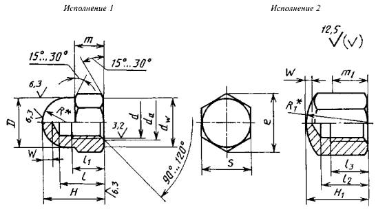 соответствовать указанным на чертеже и в табл. 1, гаек исполнения 2