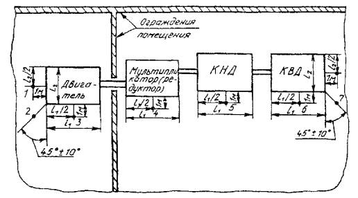 и точек измерения (см. черт. 1). 1 - 7 - точки измерения шума; КНД - корпус низкого давления