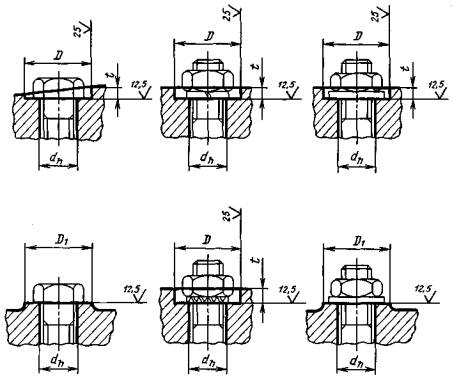 опорных поверхностей под цилиндрические головки винтов сквозные отверстия по
