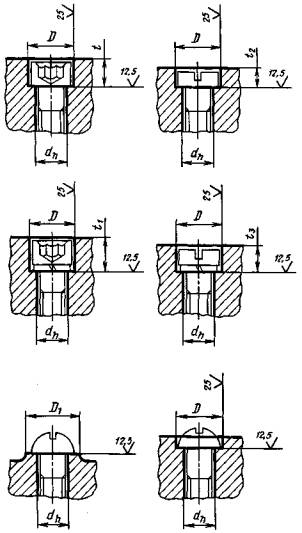 поверхностей под цилиндрические и полукруглые головки винтов со шлицем и под