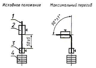 вправо и влево на угол (90±1)° от вертикали и должен перегибать образец с