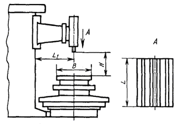 шпинделя); В - ширина рабочей поверхности стола; L - длина рабочей поверхности стола; Н - наибольшее расстояние от торца шпинделя до