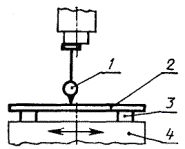 наконечник касался рабочей поверхности стола 2 в точке, удаленной от оси вращения на радиусе R За торцовое биение принимают
