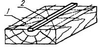устанавливают поверочную линейку 2. Измерения проводят в продольном