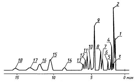 является хроматограмма, полученная на колонке с н-гептадеканом. Площади