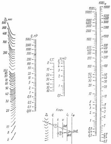 гидравлический расчет напорных пластмассовых трубопроводов по номограмме (рис.