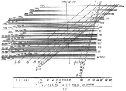 Номограмма для гидравлического расчета напорных трубопроводов из пластмассовых