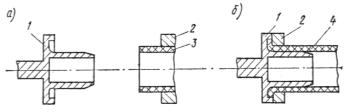 контактной стыковой сваркой а — отводов и колен, б — тройников; в — крестовин