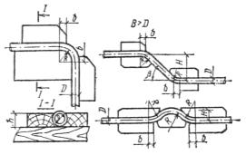 8.15. Испытывать образцы на статический изгиб рекомендуется по схеме, показанной на рис. 20. Изгиб осуществляется за 3—5 с. Полный условный угол изгиба a определяют как сумму углов 2b и 2g. При хорошем качестве сварного шва не менее 80% испытываемых образцов не должно разрушаться при изгибе на полный условный угол a = 180°. 8.16. При испытании на отдир образец зажимается на 1/3 — 1/2 длины сварного соединения, после чего производится изгиб свободной части образца на отдир трубы от раструба фасонной части и на отдир раструба фасонной части от трубы. При этом сварные соединения не должны расслаиваться по линии соединения сварного шва.