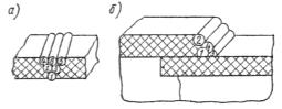 нагрев свариваемых поверхностей должен производиться равномерно до появления на поверхности мелких пузырьков и небольшой волны расплавленной массы прутка и основного материала; сварочный пруток нагревается до более высокой температуры, чем соединяемые, поверхности; угол наклона прутка при подаче его в шов должен быть равен 90°; сила вдавливания прутка в шов должна составлять 14—16 Н (1,4—1,6 кгс) для одинарного сварочного прутка 3 мм и 24—26 Н (2,4—2,6 кгс) для сдвоенного прутка сложного профиля 6Х3 мм; расстояние от наконечника горелки до свариваемых поверхностей должно быть равно 5—10 мм; угол наклона наконечника горелки к поверхности сварного шва должен быть равен 20—45°; правильное распределение тепла осуществляется за счет непрерывного покачивания сопла-горелки и подачи струи горячего воздуха попеременно на пруток и свариваемые поверхности; корень шва должен быть проведен одинарным прутком диаметром 3 мм; средняя скорость укладки сварочного прутка диаметром 3 мм должна составлять 12—15 м/ч; для обеспечения равномерного распределения напряжений в шве укладку прутков в соединении следует выполнять в последовательности, показанной на рис. 21; вытяжка сварочного прутка, уложенного в шов, не должна превышать 20%. 8.25. Механические испытания образцов на растяжение, в соответствии с пп. 8.17 и 8.18, следует производить в случаях, указанных в п. 8.13.