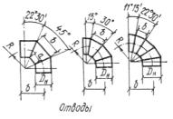 компенсации осадки труб при оплавлении и сварке. 9.6. Сварные отводы, как правило, должны иметь от одного до трех секторов. Радиус кривизны сварного отвода должен составлять 1—1,5 наружного диаметра трубы.