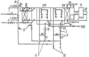 соответственно циркуляционные насосы малого и большого контуров циркуляции; VIII – соленоидные клапаны; IX – взаимообратные