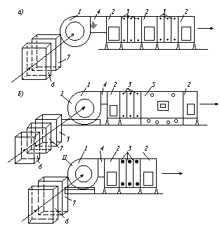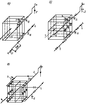 обслуживании разнохарактерных помещений I, II, III – теплообменники