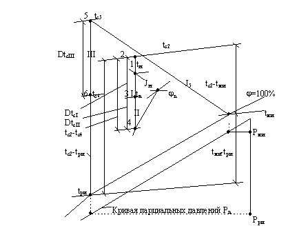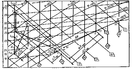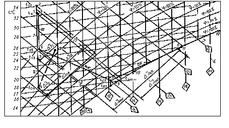 камеры МК (точка 7, рис. 18). На I—d-диаграмме при I7 и j = 95 % находят tс7 = 17,1 °С