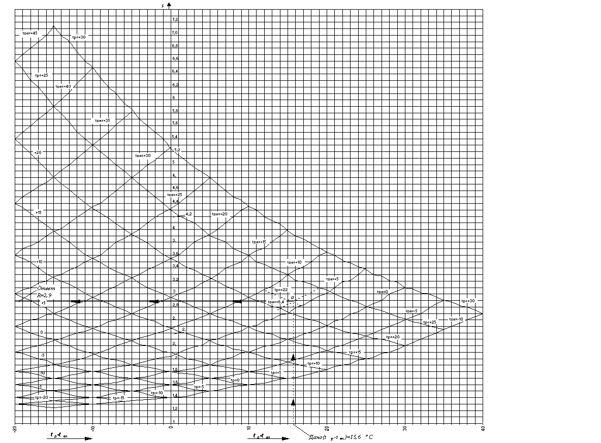 °С; в) критерий R по диаграмме на рис. 14, предварительно определив разность (tр – tвн), принимая tp = tp7 = 16,1 °С и tвн