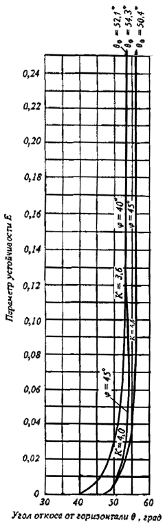 следует устанавливать в проекте. 3.7. Доработку недоборов до проектной отметки следует производить с сохранением природного сложения грунтов оснований. 3.8. Восполнение переборов в местах устройства фундаментов и укладки трубопроводов должно быть выполнено местным грунтом с уплотнением до плотности грунта естественного сложения основания или малосжимаемым грунтом (модуль деформации не менее 20 МПа). В просадочных грунтах II типа не допускается применение дренирующего грунта. 3.9. Восполнение переборов в планировочных выемках в скальных грунтах допускается выполнять местным скальным грунтом, не содержащим на поверхности кусков размером свыше 5 см. 3.10. Способ восстановления оснований, нарушенных в результате промерзания, затопления, а также переборов глубиной более 50 см, должен быть согласован с проектной организацией. 3.11. Наибольшую крутизну откосов траншей, котлованов и других временных выемок, устраиваемых без крепления в грунтах, находящихся выше уровня подземных вод (с учетом капиллярного поднятия воды по п. 3.12), в том числе в грунтах, осушенных с помощью искусственного водопонижения, следует принимать в соответствии с требованиями СНиП III-4-80. При высоте откосов более 5 м в однородных грунтах их крутизну допускается принимать по графикам рекомендуемого приложения 3, но не круче указанных в СНиП III-4-80 для глубины выемки 5 м и во всех грунтах (включая скальные) не более 80°. Крутизна откосов выемок, разрабатываемых в скальных грунтах с применением взрывных работ, должна быть установлена в проекте. 0,3 м - для крупных, средней крупности и мелких песков 0,5 « - « пылеватых песков и супесей 1,0 « - « суглинков и глин 3.13. Крутизну откосов подводных и обводненных береговых траншей, а также траншей, разрабатываемых на болотах, следует принимать в соответствии с требованиями СНиП III-42-80. 3.14. В проекте должна быть установлена крутизна откосов грунтовых карьеров, резервов и постоянных отвалов после окончания земляных работ в зависимости от направлений рекультивации и способов закрепления поверхности откосов. 3.16. Максимальную глубину выемок с вертикальными незакрепленными стенками следует принимать в соответствии с требованиями СНиП III-4-80. 3.16. Наибольшую высоту вертикальных стенок выемок в мерзлых грунтах, кроме сыпучемерзлых, при среднесуточной температуре воздуха ниже минус 2 °С допускается увеличивать по сравнению с установленной СНиП III-4-80 на величину глубины промерзания грунта, но не более чем до 2 м. 3.17. В проекте должна быть установлена необходимость временного крепления вертикальных стенок траншей и котлованов в зависимости от глубины выемки, вида и состояния грунта, гидрогеологических условий, величины и характера временных нагрузок на бровке и других местных условий. 3.18. Число и размеры уступов и местных углублений в пределах выемки должны быть минимальными и обеспечивать механизированную зачистку основания и технологичность возведения сооружения. Для котлованов под жилые дома число уступов и местных углублений в скальных грунтах не должно превышать трех, в прочих грунтах - пяти. Отношение высоты уступа к его длине устанавливается проектом, но должно быть не менее 1:2 - в глинистых грунтах, 1:3 - в песчаных грунтах. 3.19. При необходимости разработки выемок в непосредственной близости и ниже подошвы фундаментов существующих зд