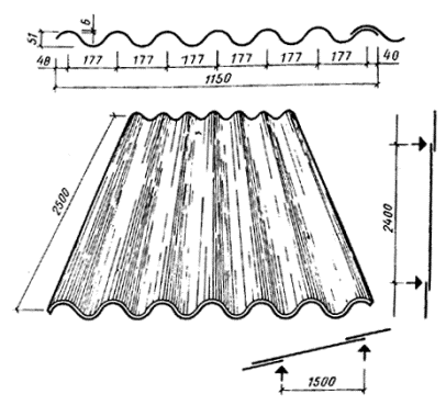 асбестоцементных конструкций следующих типов: плоских и волнистых (профилированных) листов, сводчатых оболочек волнистого профиля, изготовляемых из листового асбестоцемента на листоформовочных машинах; плит и панелей комплексных