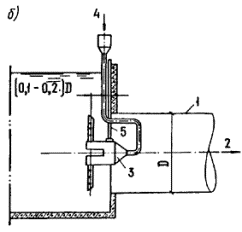 относительно точки, отстоящей от стенки трубы на 0,25 диаметра трубы D. Расположение