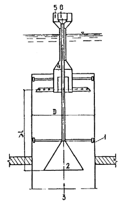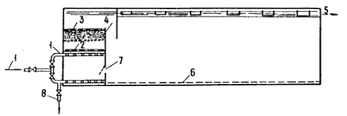 распределитель располагается по оси потока обрабатываемой воды (черт. 3) и