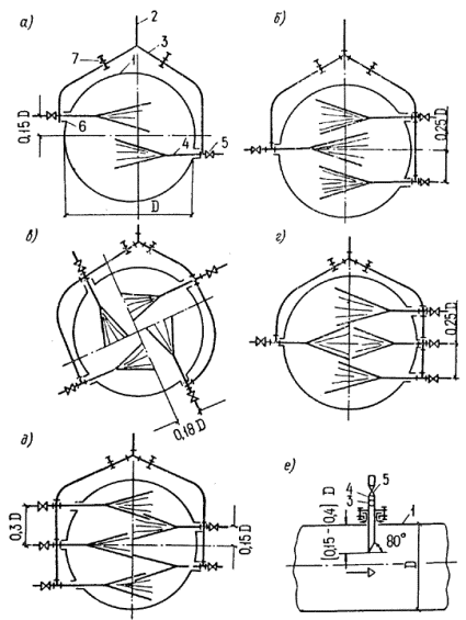 распределителя должны быть расположены симметрично относительно оси трубы, по