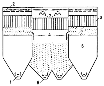отделений входной камеры перед контактными осветлителями (черт. 1). В