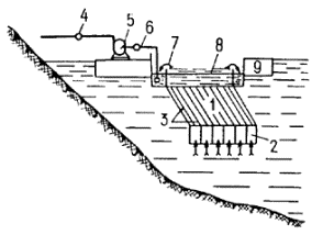 отверстия, направленные по движению потока воды. Распределитель опускается на