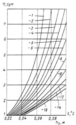 надлежит принимать в зависимости от длительности замораживания расчетного слоя