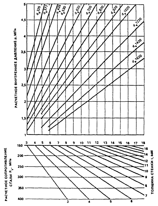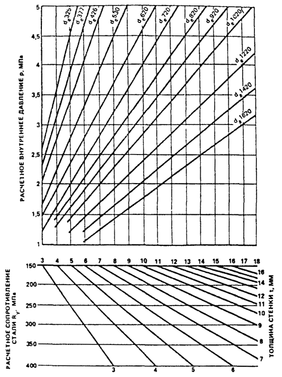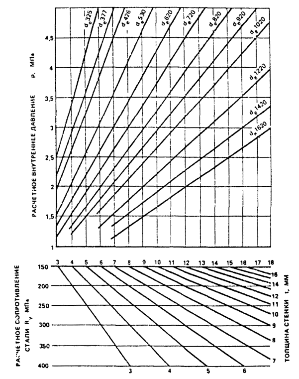 устанавливается или вычисляется значение расчетного сопротивления стали Ry. Толщина стенки труб принимается большей из двух значений, полученных