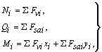 скольжения к вертикали. Нагрузки, сопротивления М - изгибающий момент; Q - поперечная сила; N - нормальная сила; Fsa - сдвигающая сила; Fsr - удерживающая сила; Fv - сумма проекции всех сил на