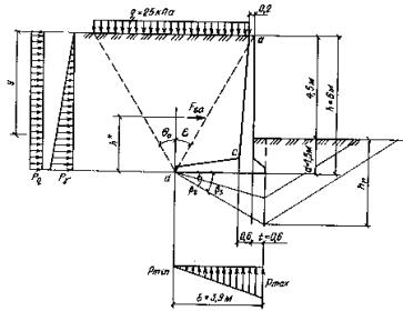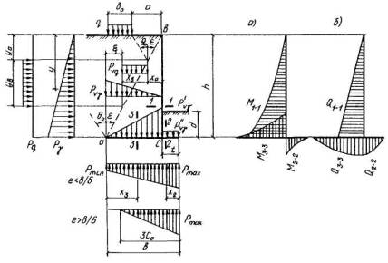 равномерно-распределенной нагрузки; р, pmax, pmin - давление под подошвой