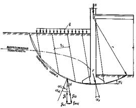 грунта соответственно горизонтального и вертикального; G - вес конструкции, грунта,