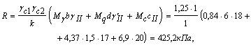 предела прочности на одноосное сжатие скального грунта; R - расчетное сопротивление