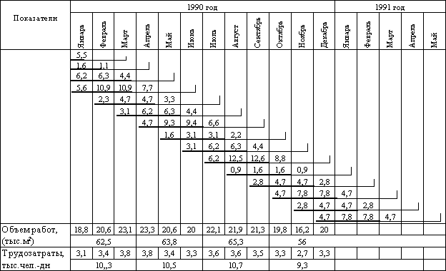 строительно-монтажных работ по годам и периодам строительства, для решения