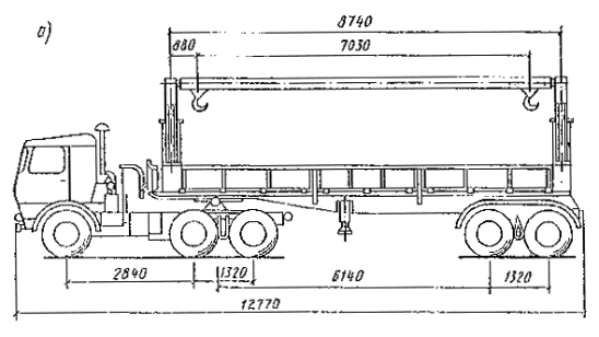 л/мин при давлении в гидросистеме не менее 10 МПа Грузоподъемность погрузчика, Н (тс) 7845(0,8) Максимальный вылет стрелы погрузчика, м 3,8 Угол поворота стрелы погрузчика, град 200 Ширина колеи, м 1,66 Дорожный просвет, м 0,25 Транспортные габариты, м: длина 7,05 ширина 2,4 высота 2,65 Эксплуатационная масса при работе с трубами длиной 5950 мм, кг 5940 Масса полная (без воды), кг 5100 Разработчик конструкторское