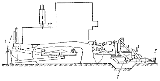 траншею; 4 - универсальный захват; 5 - привод масляных и