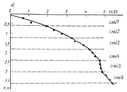 в слоистой грунтовой толщи график в координатах ln t - Н будет иметь вид