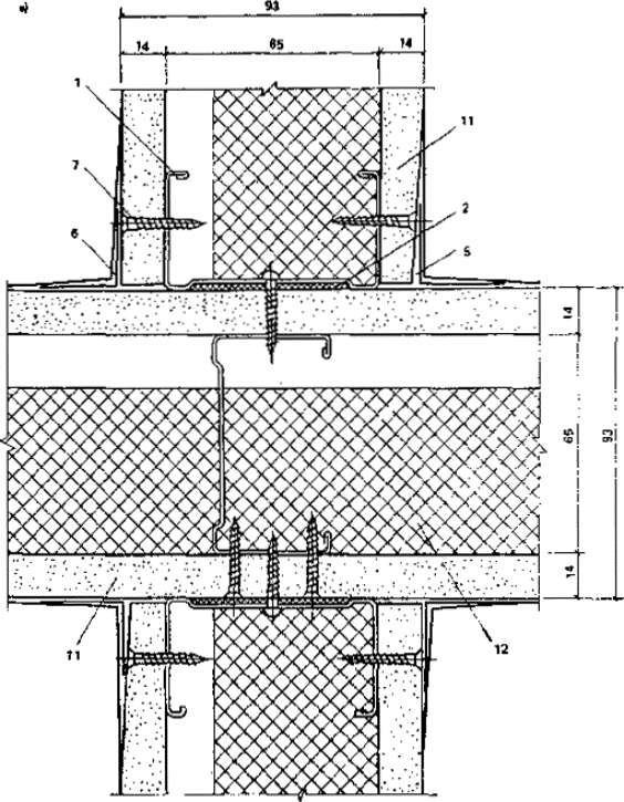 гипсокартонный лист; 12 - минераловатная плита; 11 -