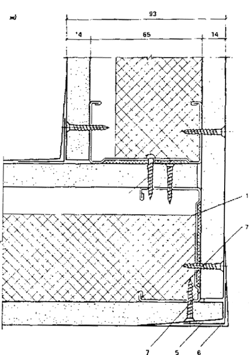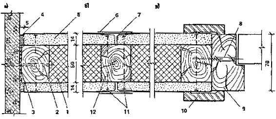 винты самосверлящие самонарезающие; 5 - обрамляющий профиль; 6 - пакля,