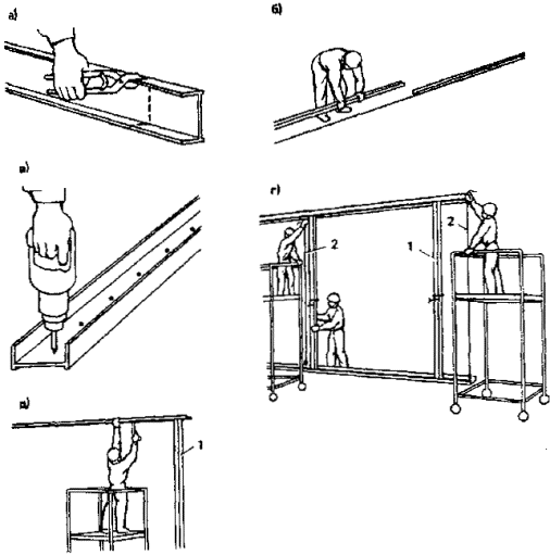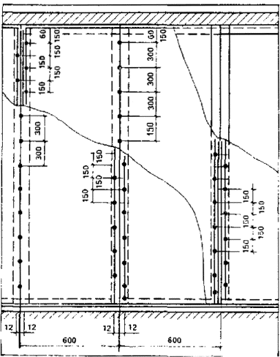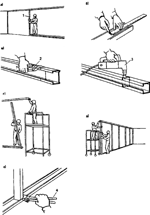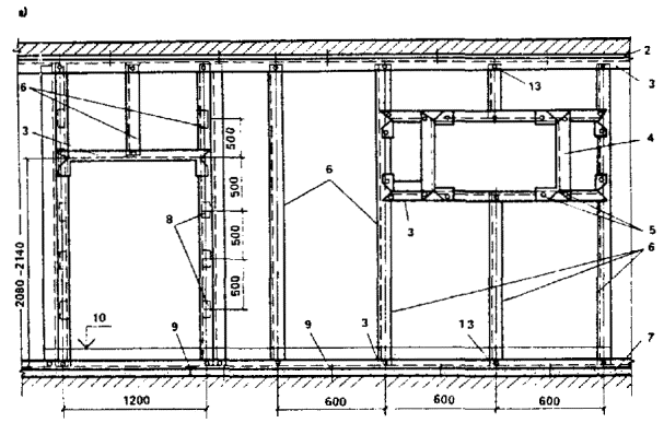 каркас перегородок может быть металлическим, деревянным или асбестоцементным (рис. 1). 2.5. В металлическом каркасе перегородок верхние и нижние направляющие и стойки выполнены из тонколистовой стали толщиной 0,5-0,6 мм. Стойки каркаса