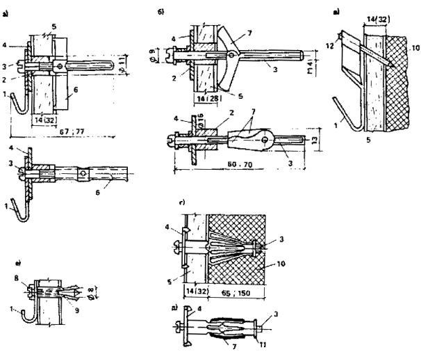 плиты; 8 - дюбель-гвоздь; 9 - перекрытие; 10, 16 - верхняя