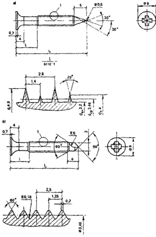 самосверлящий винт СМ1-25; 8 - деталь для крепления коробки; 9 -