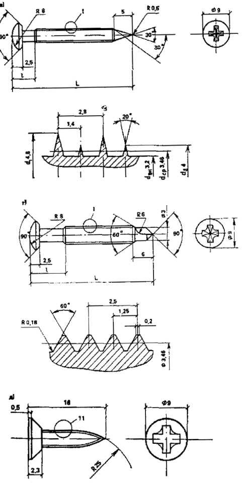 3 – ручка б) с прямым шлицем и шуруподержателем 1 – лезвие; 2 – пружина; 3