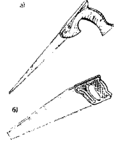 – винт закрепляющий; 4 - Рис. 36. Ножовки по дереву узкая (а) и широкая (б) Рис. 37. Терка выравнивающая для обработки торцов листов по линии реза 1 – корпус; 2 – рабочее