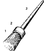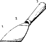 - лапка Рис. 39. Кисть-ручник (типа КР-35 и КР-45) 1 – пучок (цайг); 2 – обойма; 3 - ручка Рис. 40. Шпатель малярный 1 – полотно (шириной 45, 95, 130