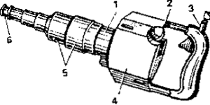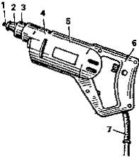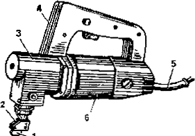 редуктора; 3 - корпус электродвигателя; 4 - рукоятка с курком; 5